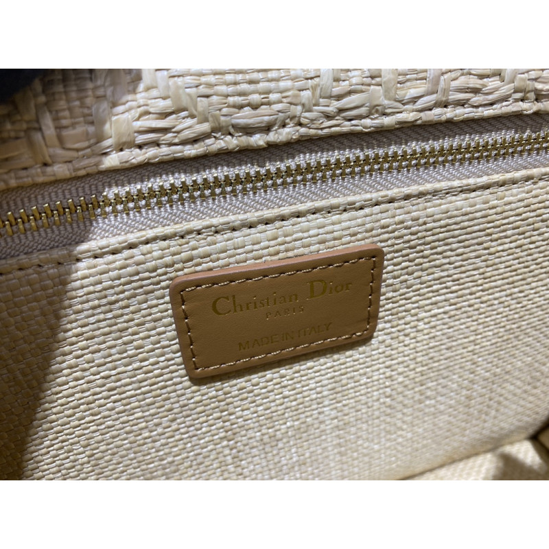 DetailThis tote is crafted from natural raffia and embellished with the classic Cannage graphic. An antique gold-plated metal 'CD' clasp on the flap and embossed '30 MONTAIGNE' logo on the back accentuate the streamlined design and adjustable leather shoulder strap to carry it by hand, over the shoulder or across the body.