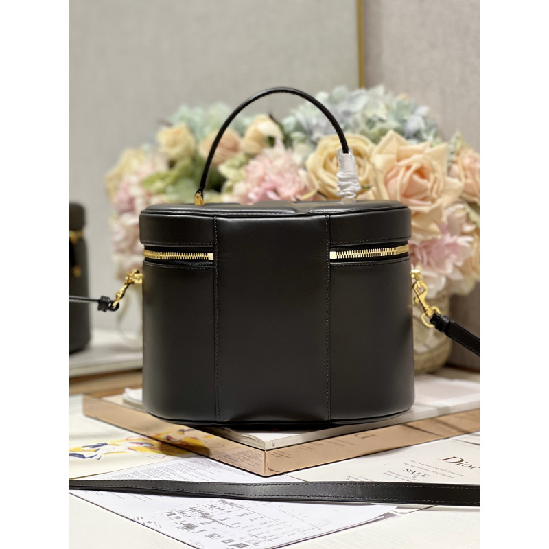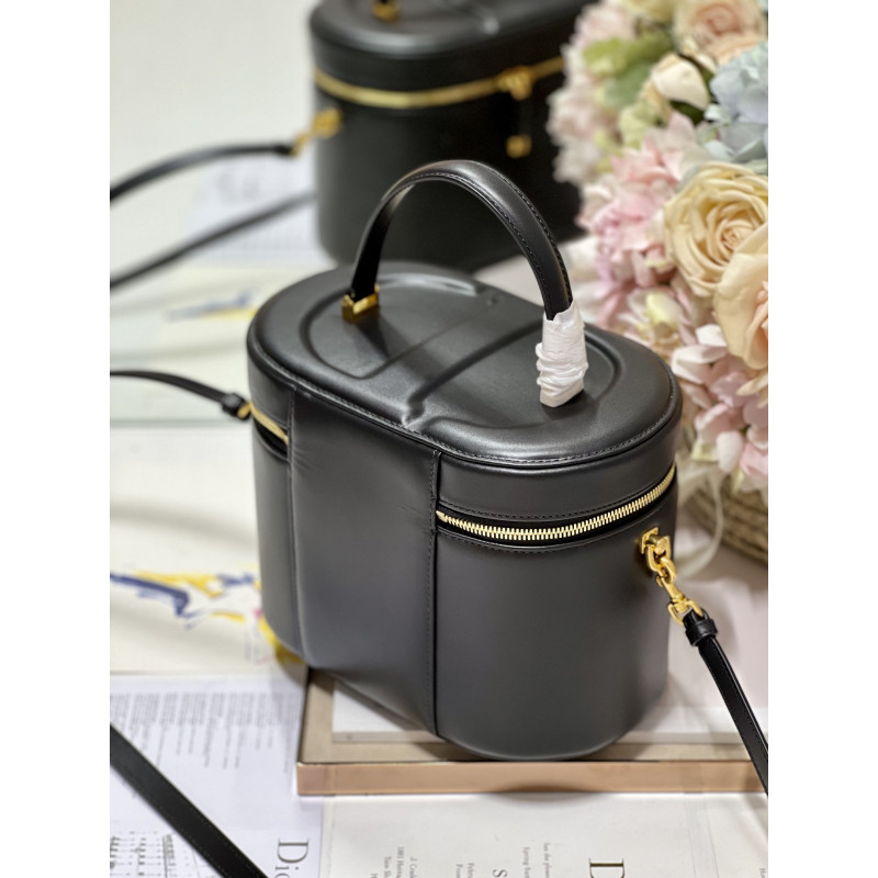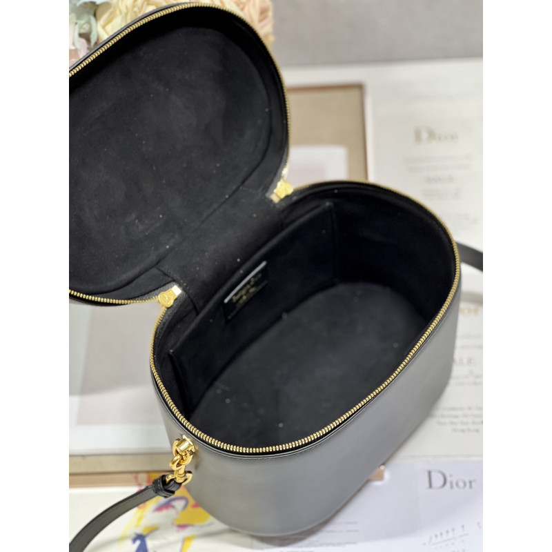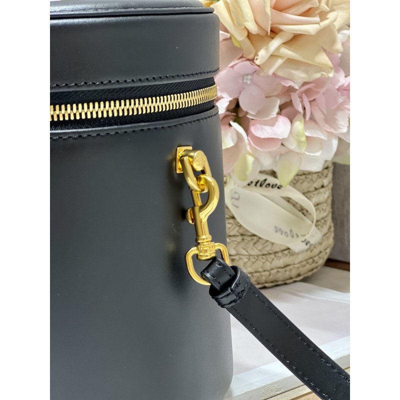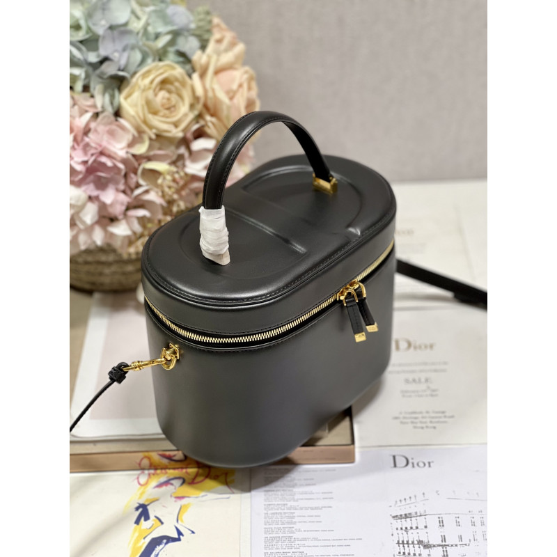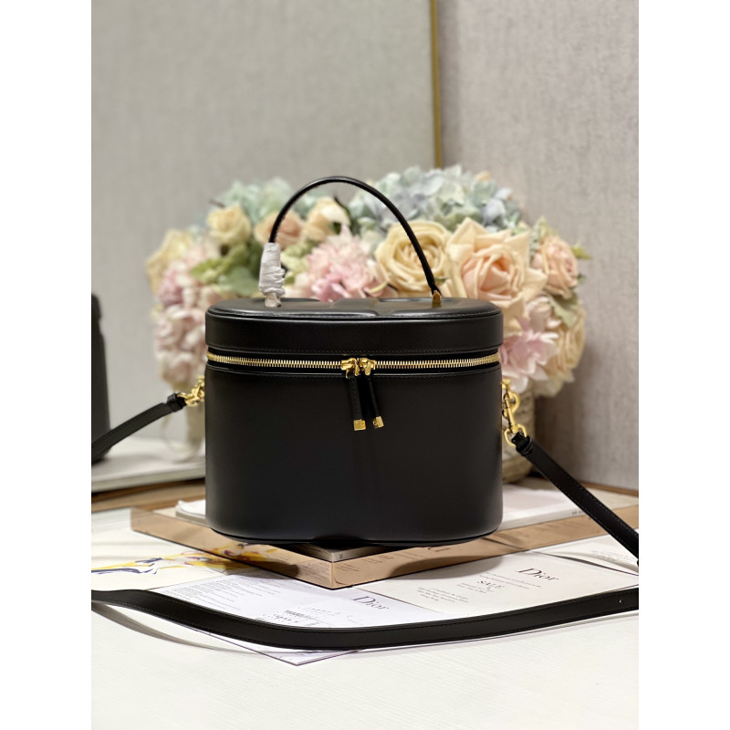 Crafted from calfskin, it features the CD signature embossed on the top and bottom. The interior is elegant and spacious with a two-way zip. The sturdy leather top handle and adjustable, detachable shoulder strap make this pouch the ideal everyday companion by hand, over the shoulder or across the body.