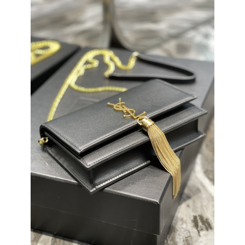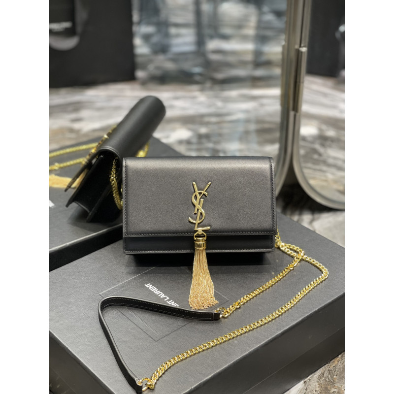 DetailTassel chain bag, detachable shoulder strap to use as a clutch, 6 card slots, 1 zipped coin pocket, 1 bill compartment. Low-key yet high-end, it can be paired with casual wear or formal occasions! Almighty!