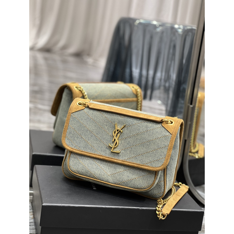 DetailFront flap with magnetic snap closure and signature YSL signature covered in leather. Chain and leather convertible shoulder strap, exterior: a magnetic pocket on the back, interior: 1 main compartment, 1 open pocket, 1 zip pocket, 1 pocket under the flap.