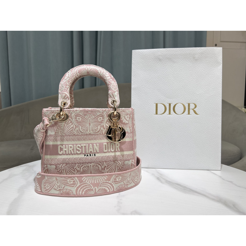 This stylish and practical handbag is crafted from pink Oblique print fabric, featuring an interior compartment spacious enough to store daily essentials. Butterflies are messengers of happiness and good fortune, symbolizing freedom and an unrestrained spirit.