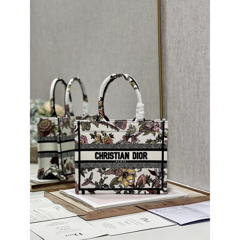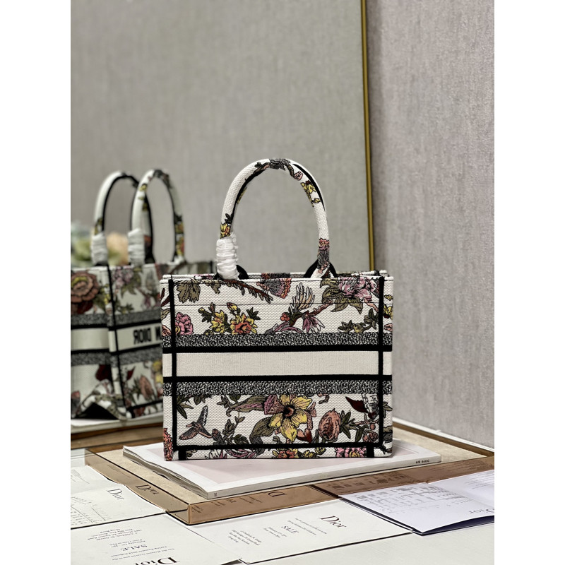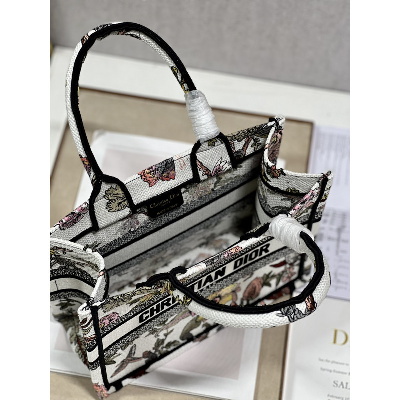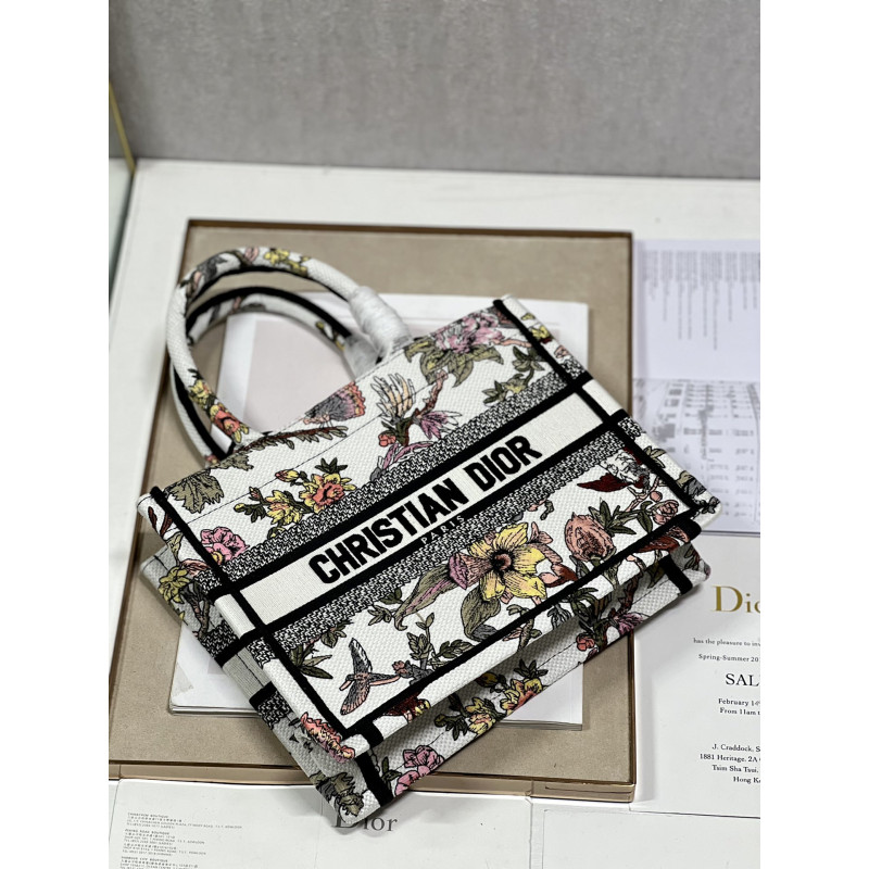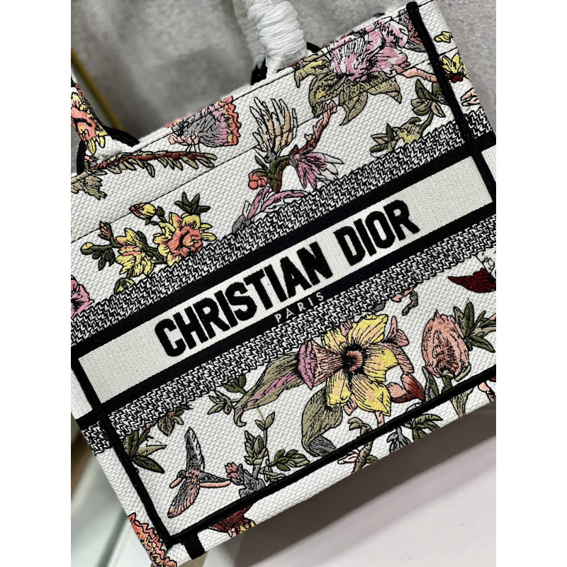 Designed to hold all your daily essentials, it's fully embroidered with the Dior Jardin Botanique motif, showcasing the romantic floral motif of the Granville gardens. The Christian Dior Paris signature adorns the front, reflecting the house's signature craftsmanship.