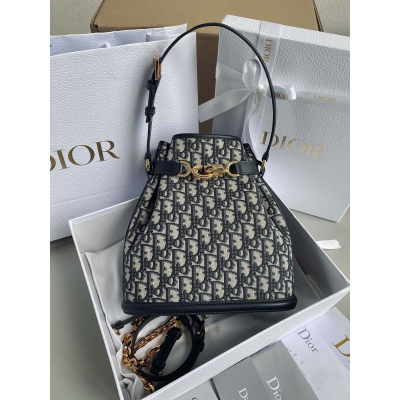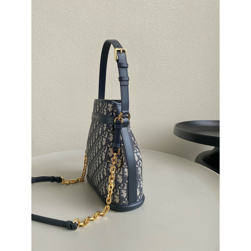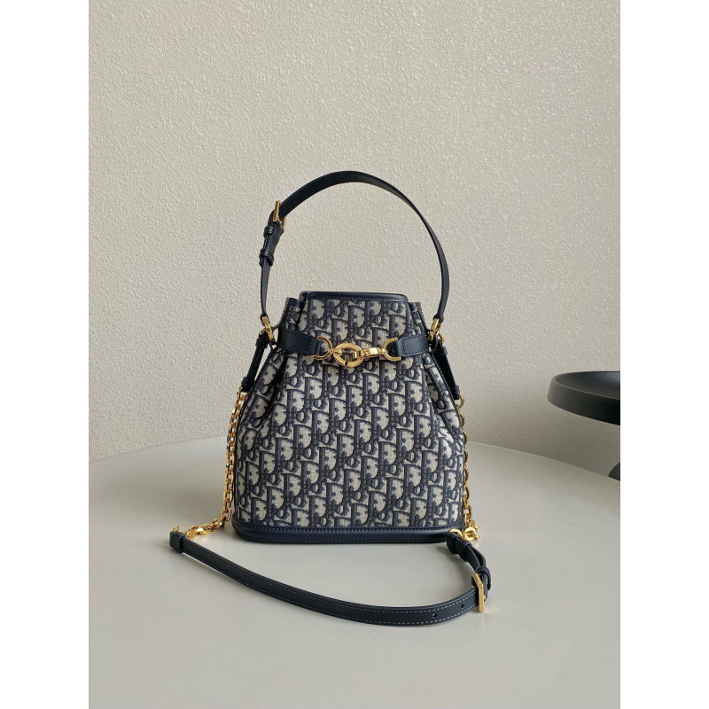Rotate the D-shaped letter to open and close the CD buckle lock. When pulled tight, the bag is highly secure; when loosened, it gives a casual and relaxed feeling. Both long and short shoulder straps are adjustable, and the chain is detachable. It has a three-dimensional design, creating a full atmosphere, with a large capacity. Perfect for daily commutes, this bucket bag is absolutely fantastic.