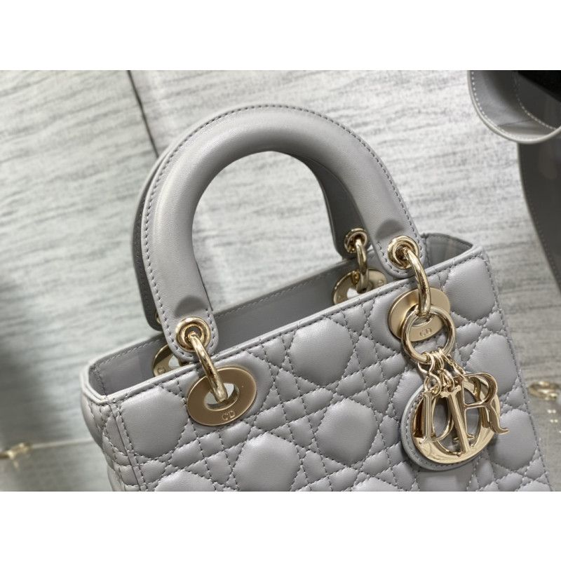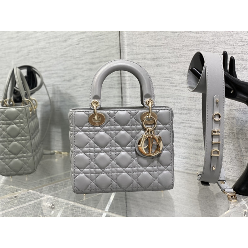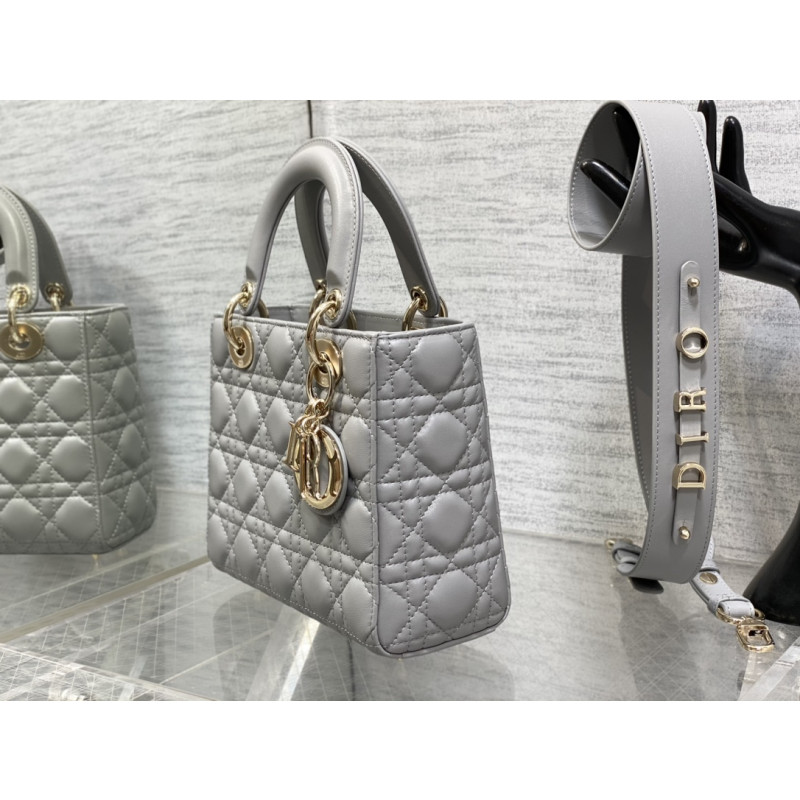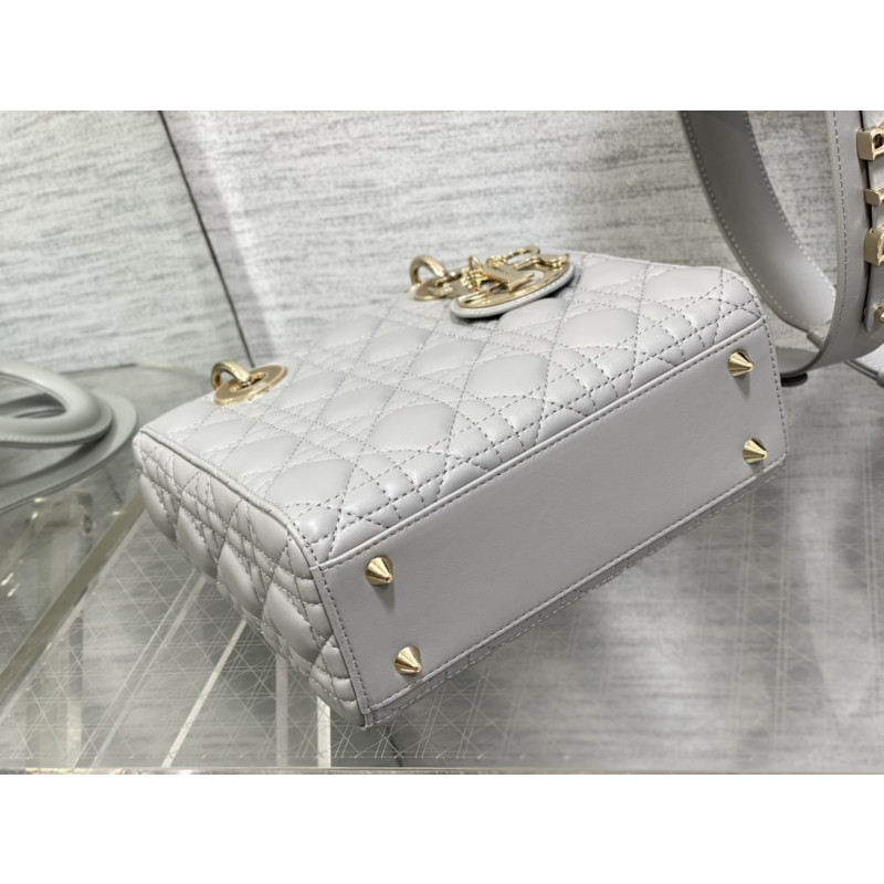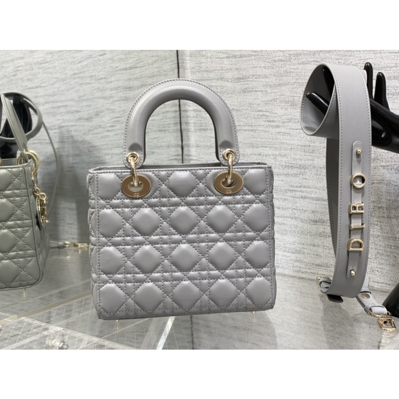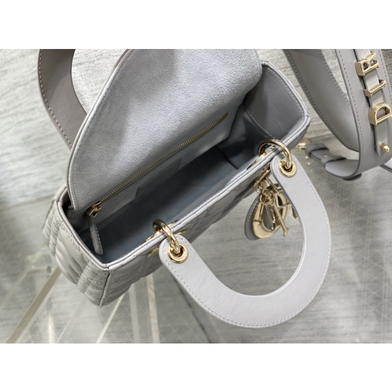 Crafted from lambskin, it features Cannage stitching for an instantly recognizable quilted texture. Can be carried by hand or crossbody, with internal zip pocket and adjustable shoulder strap, which can be matched with different embroidered shoulder straps, making it an ideal companion for evening wear.