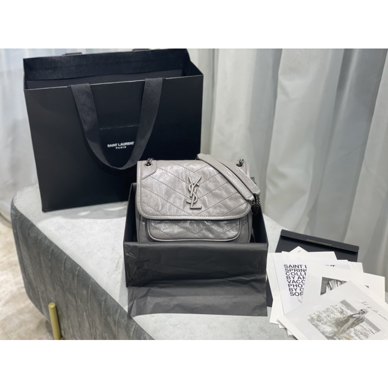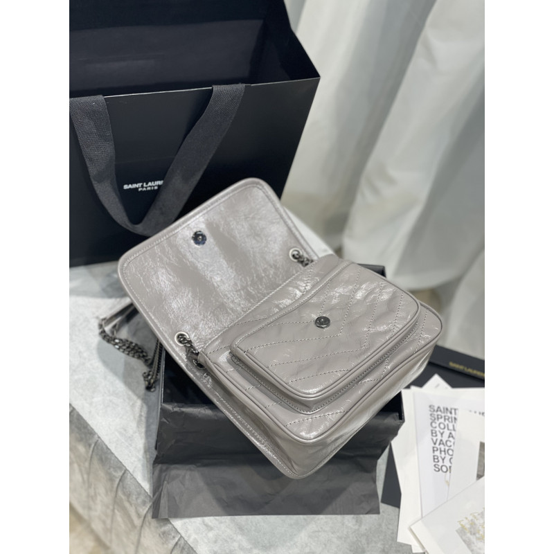 Front flap with magnetic snap closure and signature YSL signature covered in leather. Exterior: 1 rear flat pocket, Interior: 1 main compartment, 1 flat pocket, 1 pocket under the flap, leather lining.