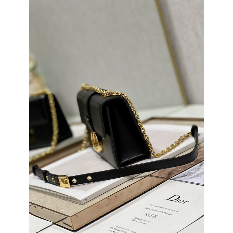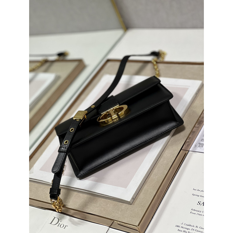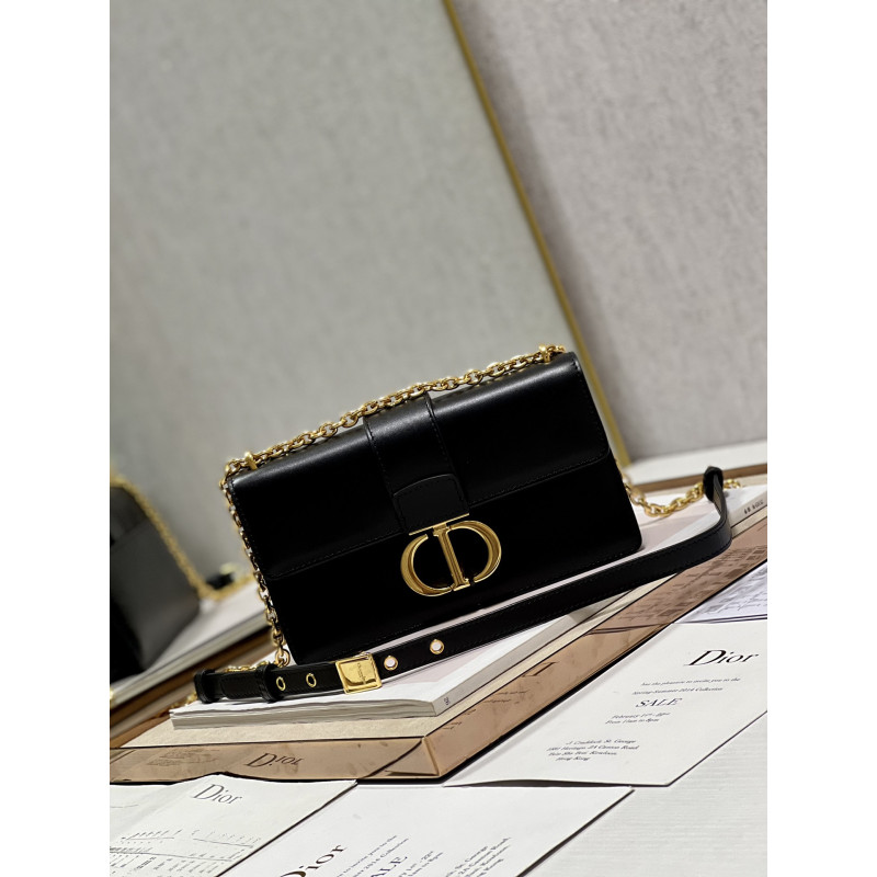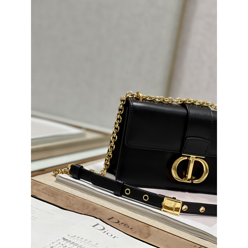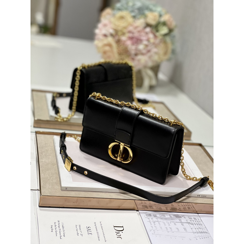 DetailCrafted in black calfskin, the flap features an antique gold-plated metal CD clasp and the 30 Montaigne signature embossed on the back accentuates the streamlined design. The bag features a detachable, adjustable chain strap with leather inserts, making it comfortable to carry in the hand, over the shoulder or across the body.