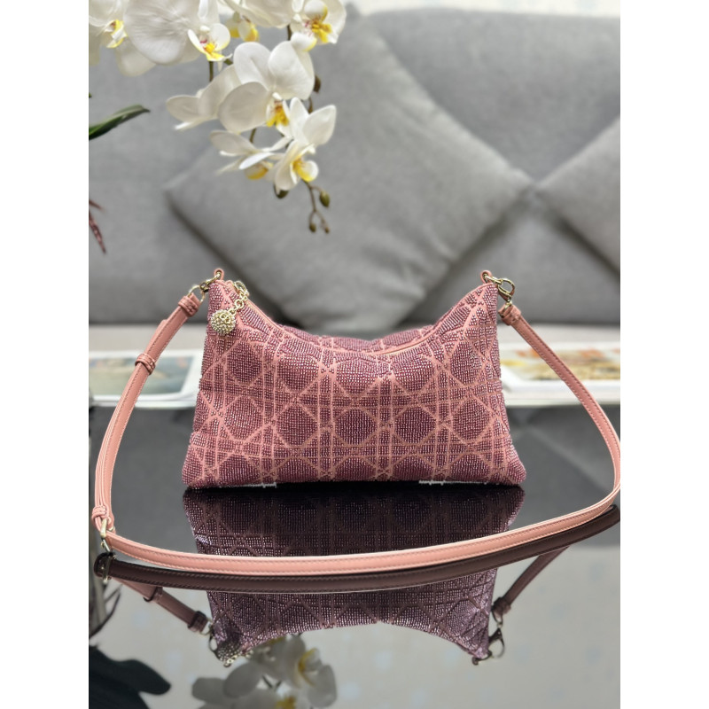 DetailIt features a classic cannage pattern. Hand-embroidered with 2mm glass beads. The adjustable and detachable leather spaghetti strap adds sophistication and adds elegance to evening looks.