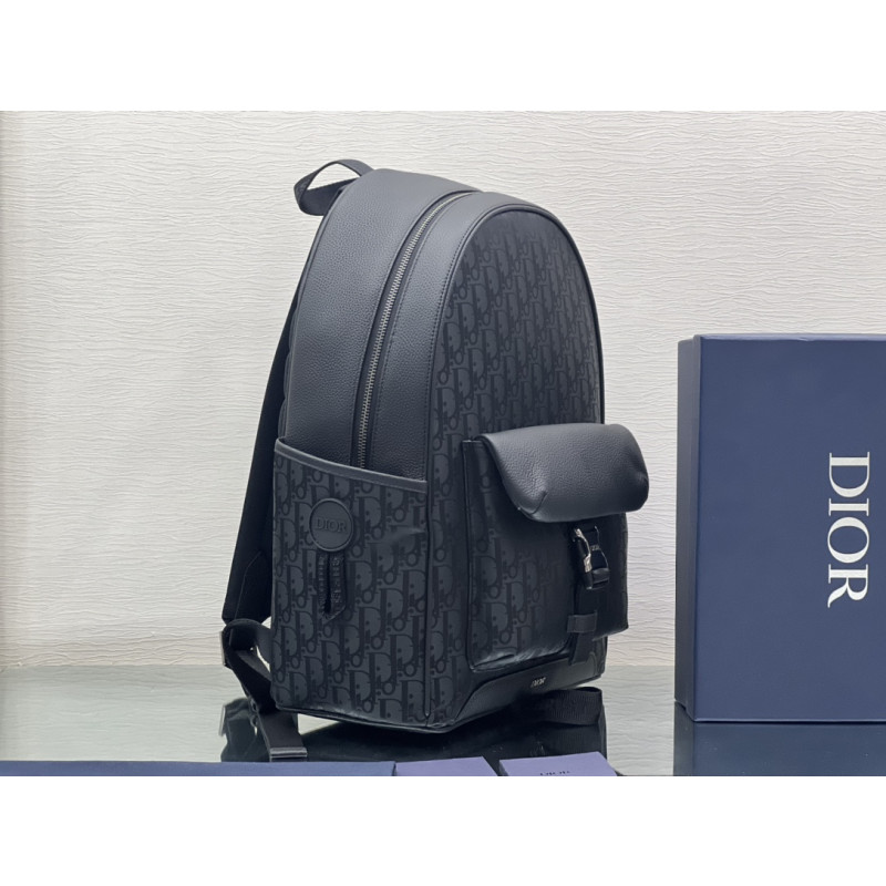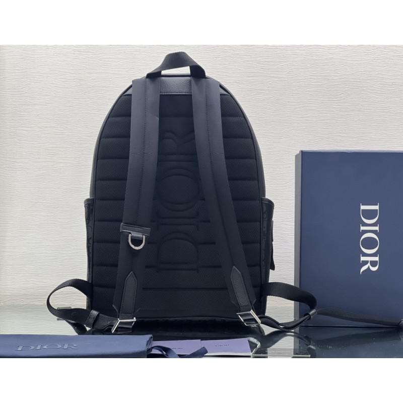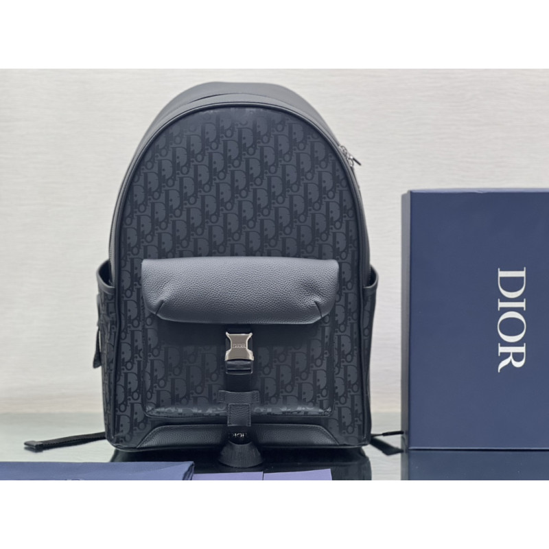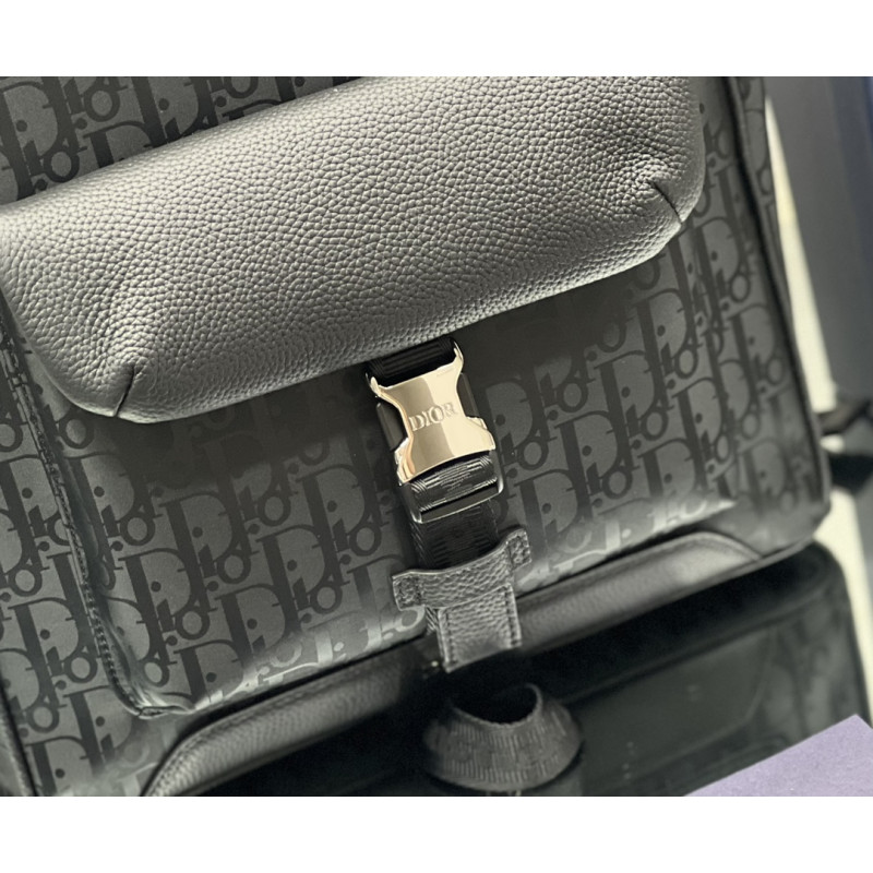 Crafted in Dior Oblique jacquard with black grained calfskin details, it's further accentuated by 'DIOR' leather patches on the sides. The roomy main compartment features a padded front flap pocket with aluminum buckle and two side pockets. Complete with padded shoulder straps and a loop for keys or a D-Touch pouch, this backpack will add the finishing touch to any casual look.​