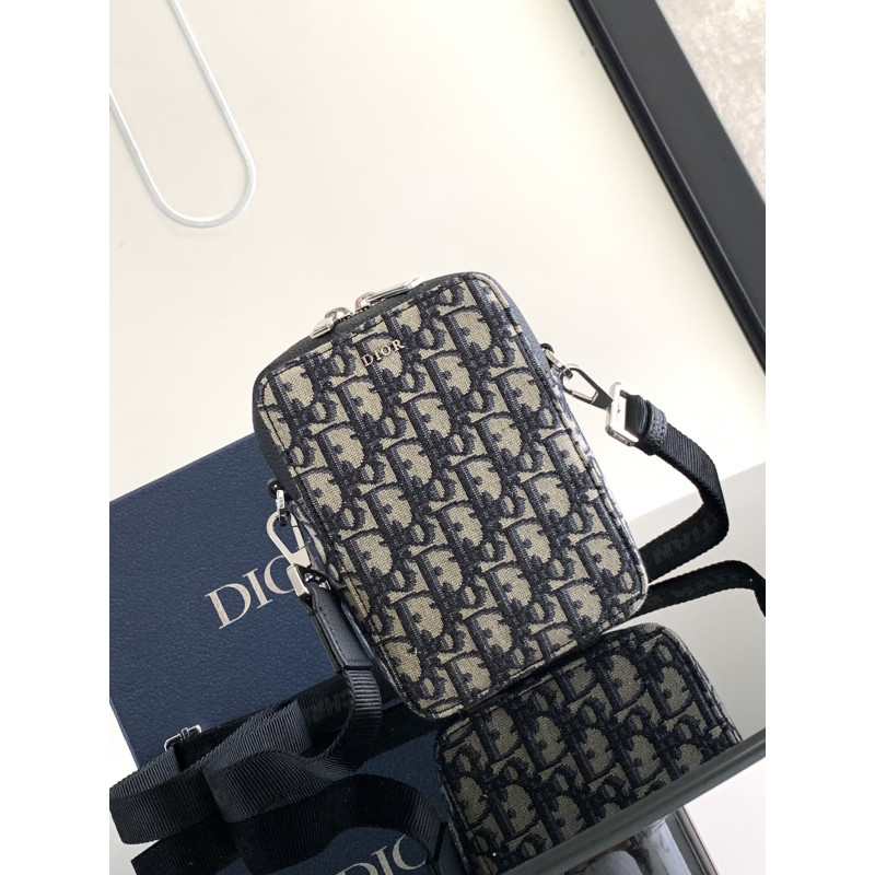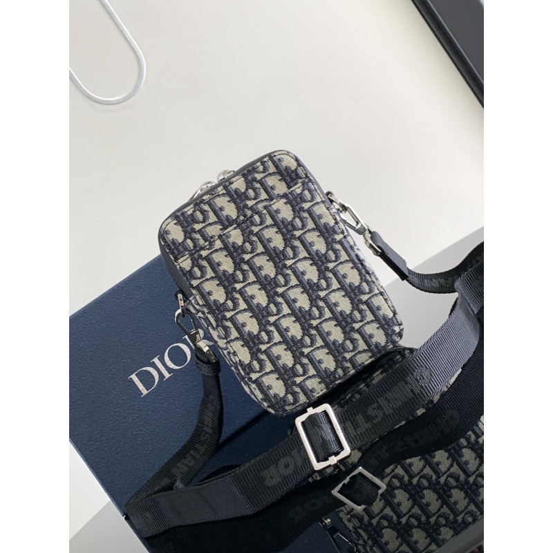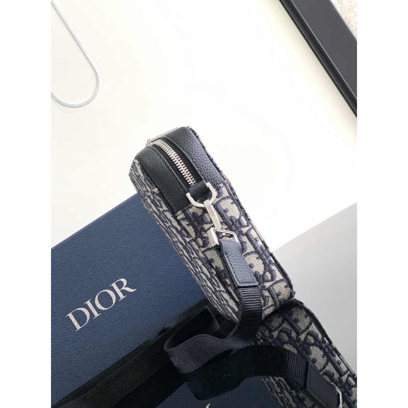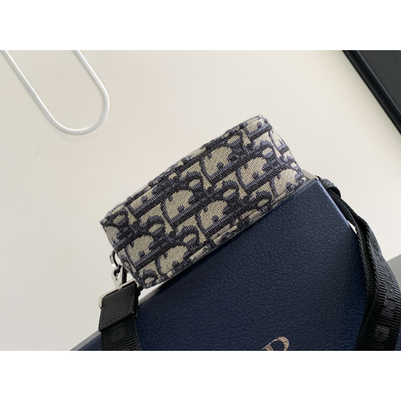 DetailCrafted from navy blue Oblique Galaxy printed leather, this piece features a zippered compartment and a rear slip pocket for conveniently carrying daily essentials. It is complemented by a detachable and adjustable 'CHRISTIAN DIOR' signature nylon jacquard shoulder strap, allowing for both shoulder and crossbody wear.