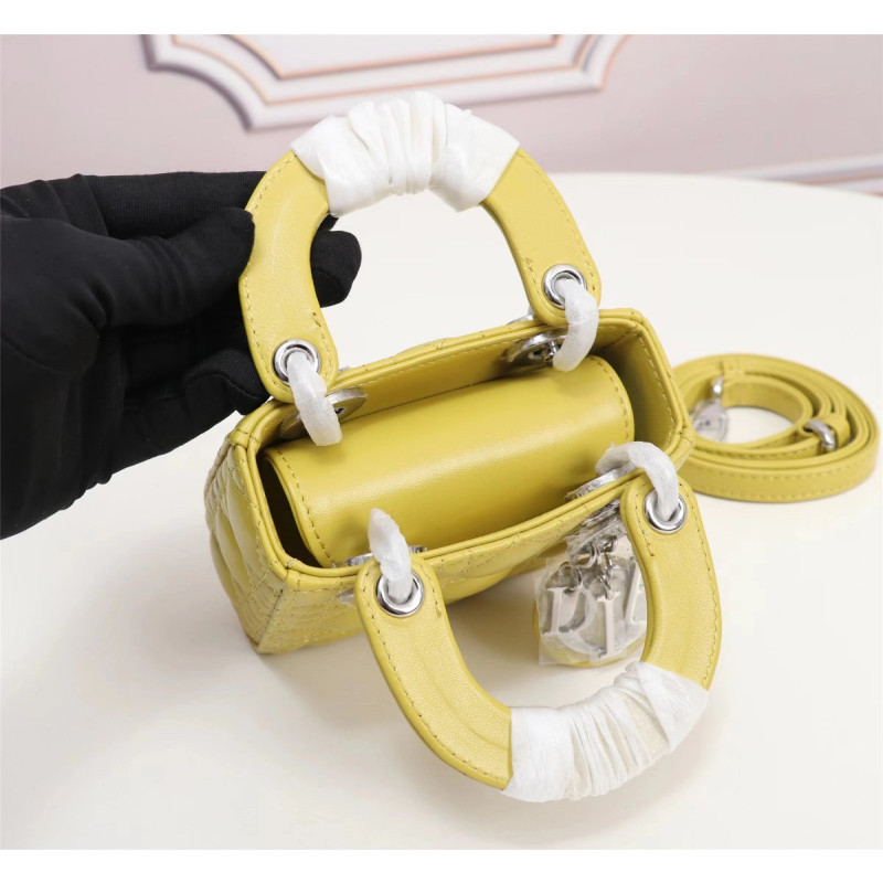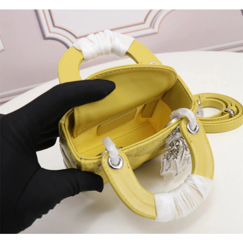 The Lady Dior micro bag embodies a vision of elegance and beauty. Equipped with a handle and adjustable, detachable shoulder strap, 1 interior compartment, can be carried by hand, over the shoulder or crossbody.