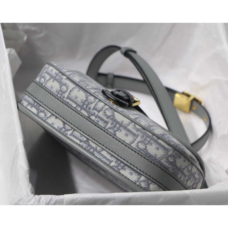 DetailCrafted in Dior Oblique jacquard and finished with antique gold-tone hardware. The removable, adjustable shoulder strap with military-style buckle fits in the hand, over the shoulder, or across the body.