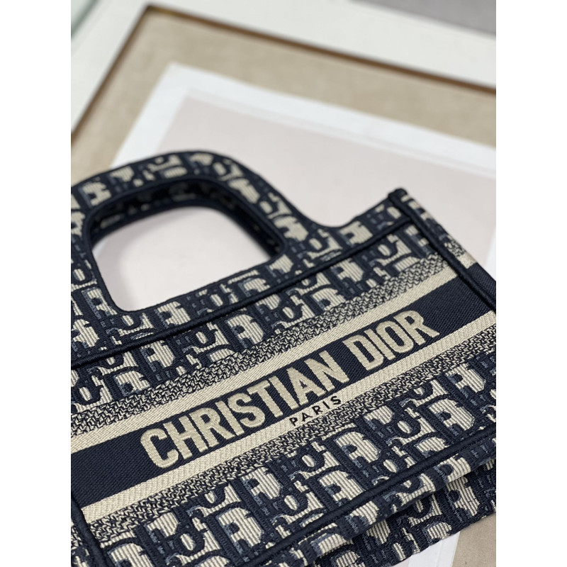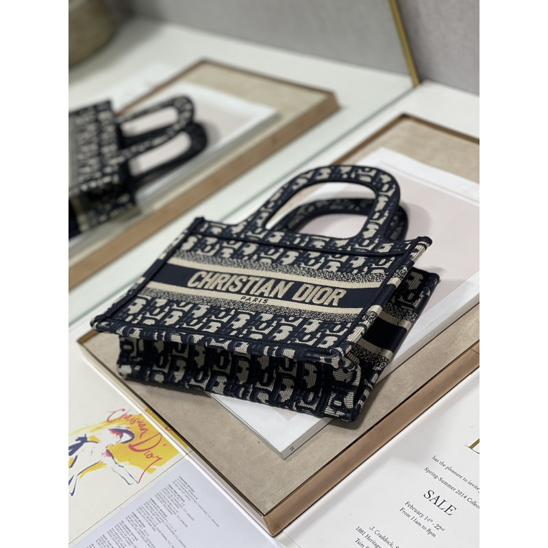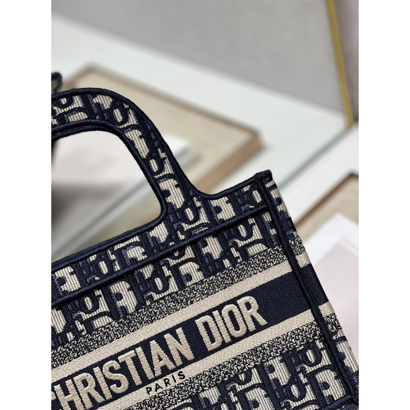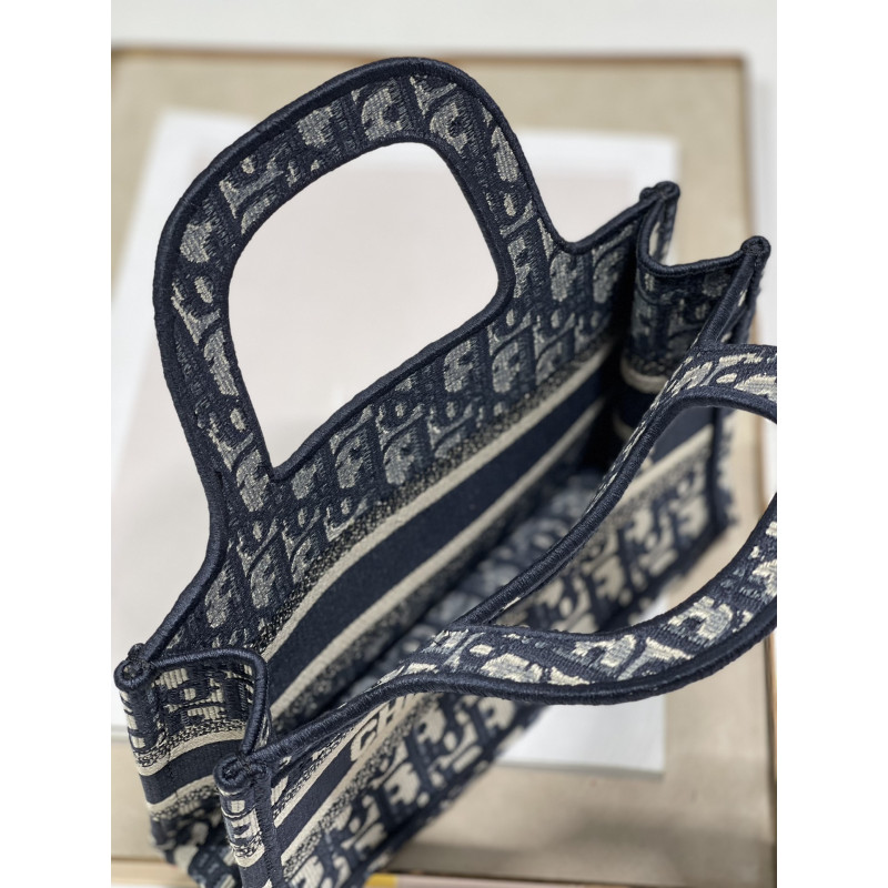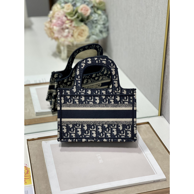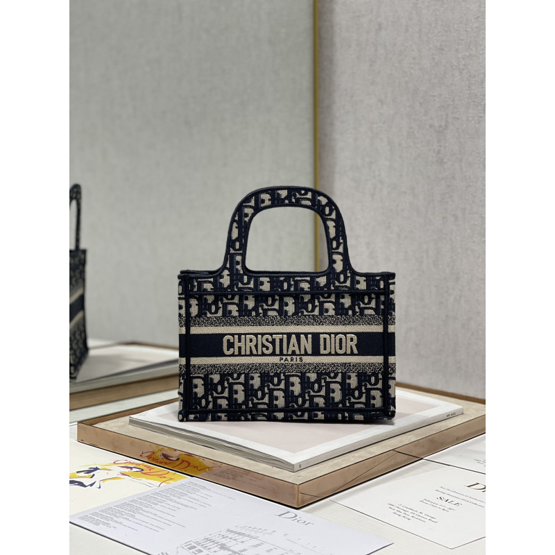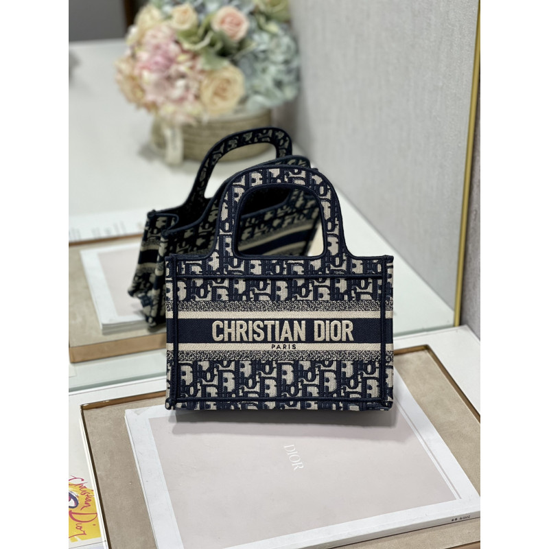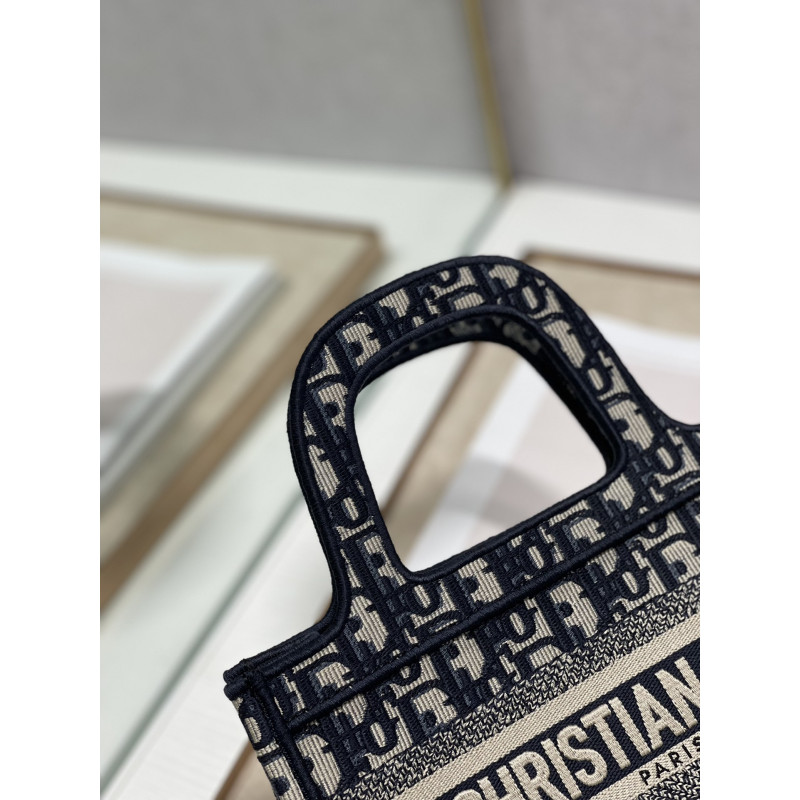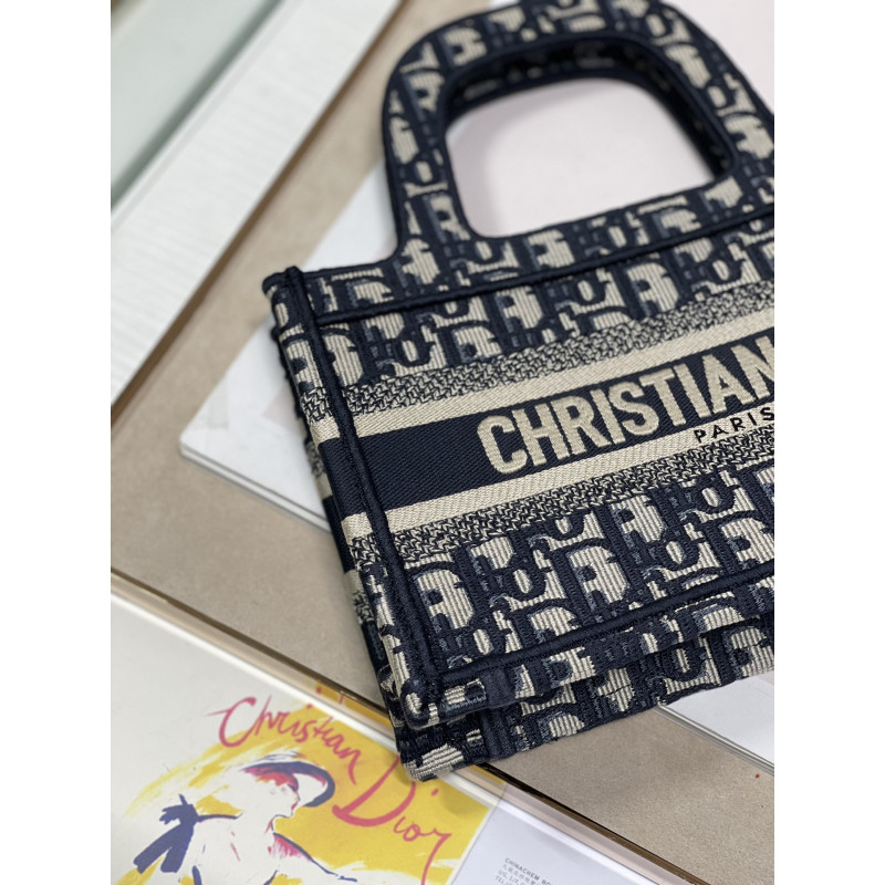 The silhouette is embroidered with the house's signature blue Dior Oblique motif. An example of Dior savoir-faire, this mini bag can be carried by the hand and combined with other Dior Oblique creations.