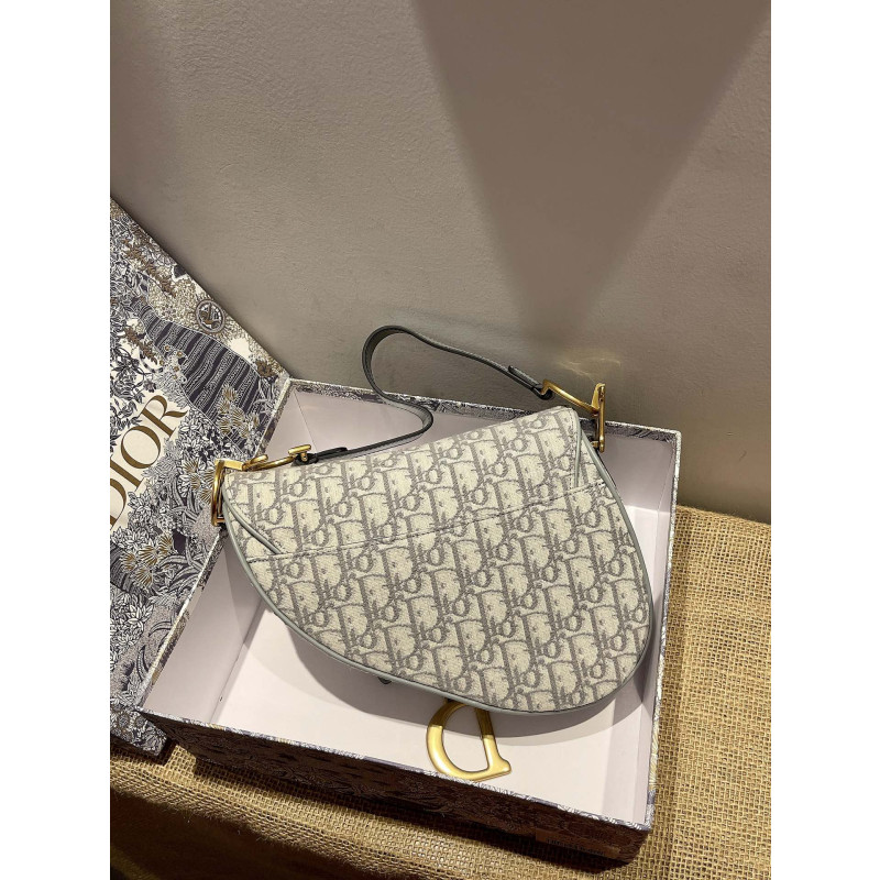 DetailCrafted in Dior Oblique jacquard fabric, it reveals a saddle flap with a magnetic D-shaped stirrup clasp and CD signature in antique gold-finish metal on either side of the shoulder strap. This saddle bag has an adjustable and detachable spaghetti strap and can be carried by hand, over the shoulder or across the body.