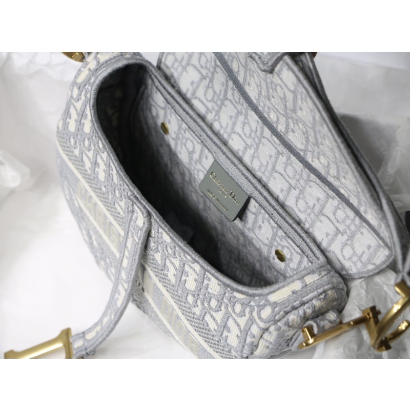 DetailCrafted in Dior Oblique jacquard fabric, it reveals a saddle flap with a magnetic D-shaped stirrup clasp and CD signature in antique gold-finish metal on either side of the shoulder strap. This saddle bag has an adjustable and detachable spaghetti strap and can be carried by hand, over the shoulder or across the body.