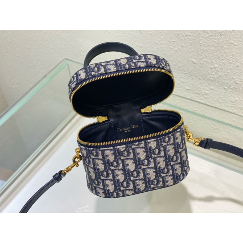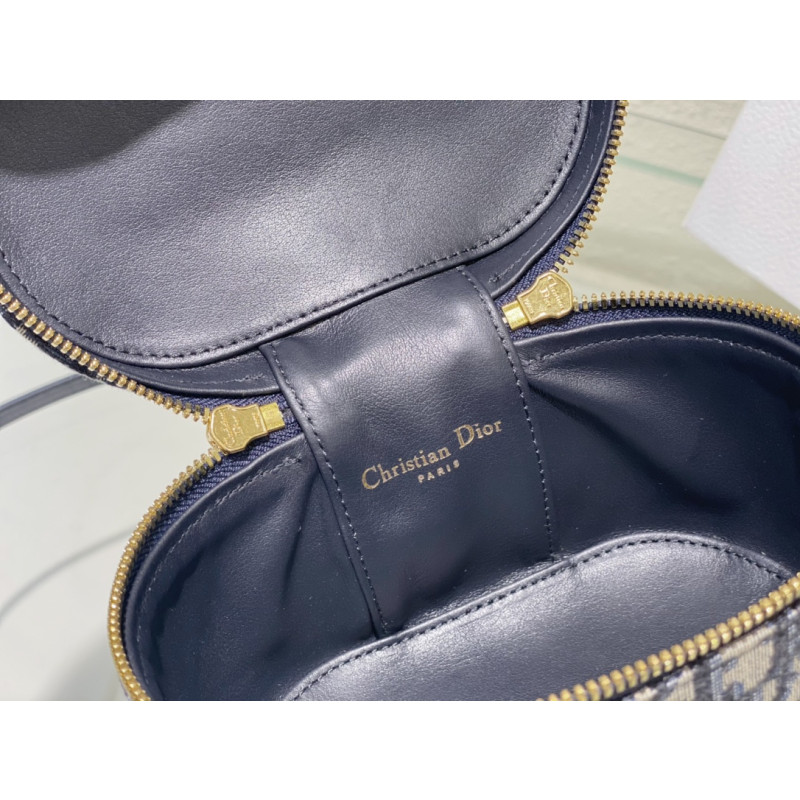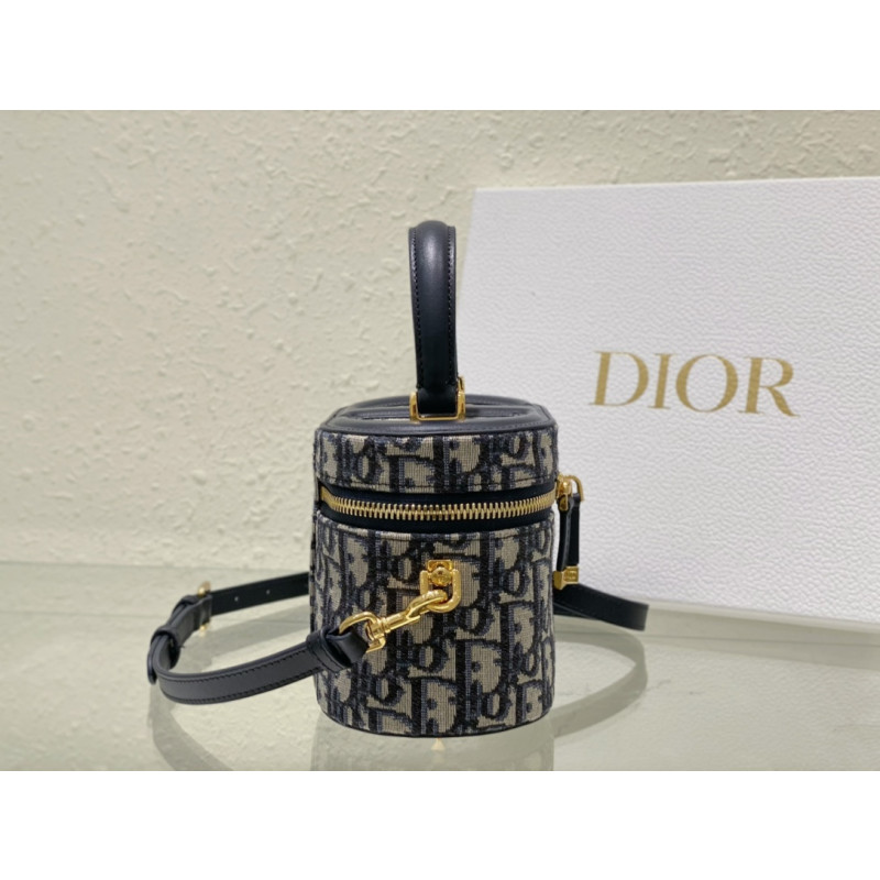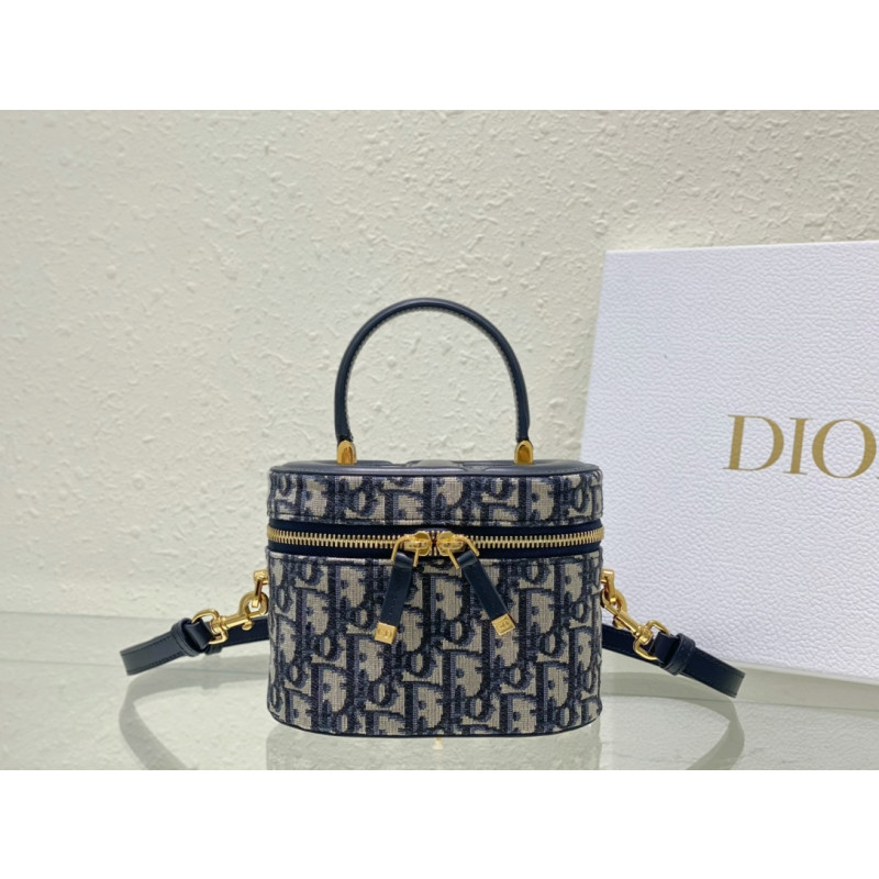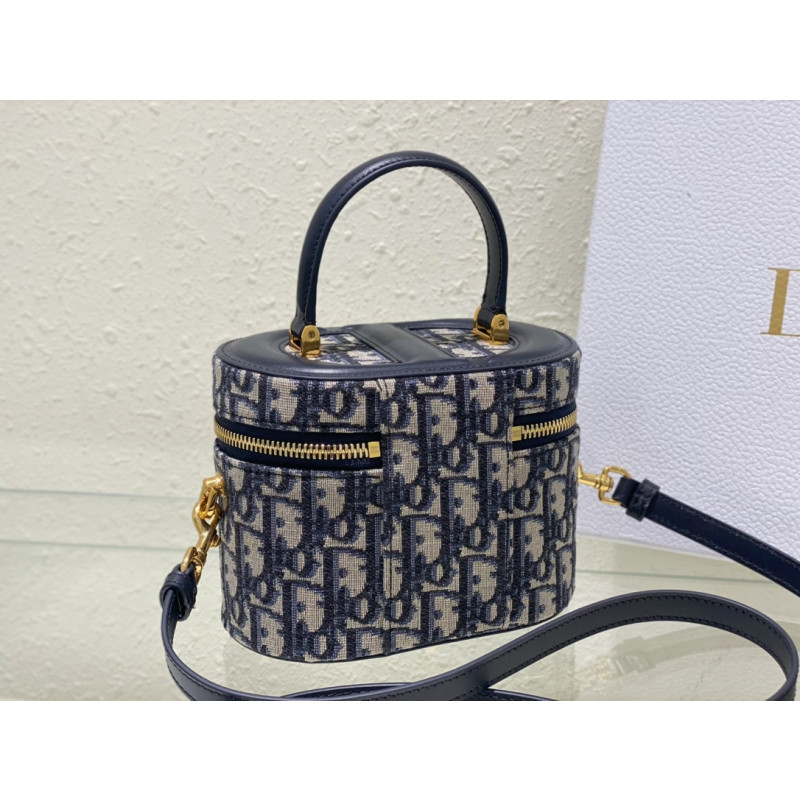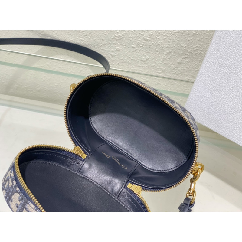 DetailCrafted from Oblique jacquard fabric, it's embossed with the CD signature on the top and bottom. The interior is elegant and spacious with a two-way zip. The sturdy leather top handle and adjustable, detachable shoulder strap make this pouch the ideal everyday companion by hand, over the shoulder or across the body.