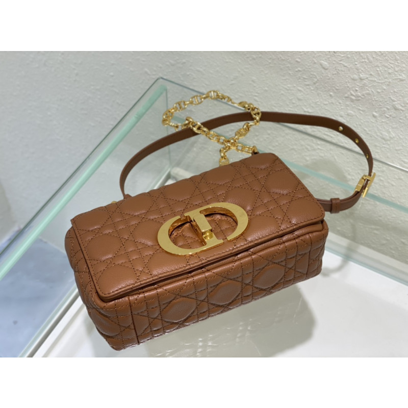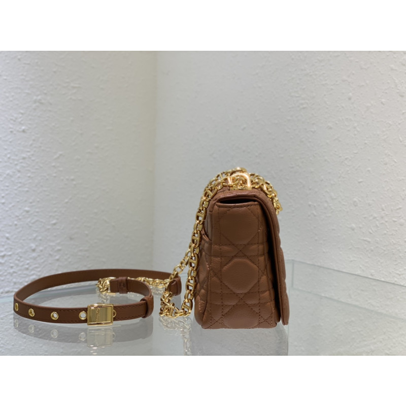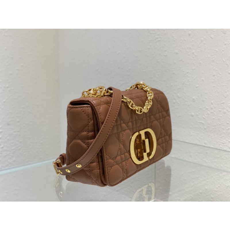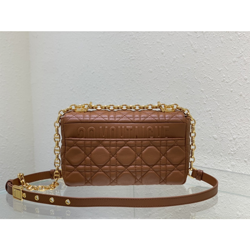 DetailCrafted from calfskin with Cannage stitching. Antique gold-plated metal 'CD' button on the flap, adjustable and detachable chain shoulder strap with 'CD' logo links, can be carried by hand, shoulder or crossbody, and can be matched with different embroidered shoulder straps.