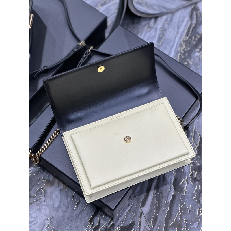 DetailFinished with a leather top handle and an adjustable and detachable leather and chain strap, it can be worn cross-body or over the shoulder. Exterior: 1 flat pocket on the back, Interior: 1 main compartment, 1 flat pocket, 1 gusseted pocket under the flap.